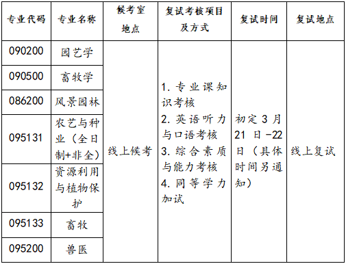 各专业复试时间、地点安排: