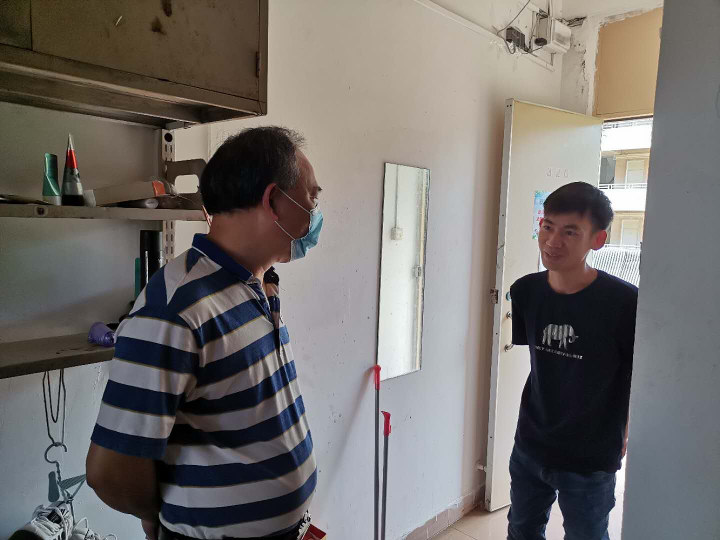 在研究生宿舍,邓伟强和研究生亲切交谈,关心员工在防疫物品、生活、学习等方面情况,并要求员工一定要严格按照公司的要求,做好防疫工作,个人卫生清洁,在校期间不得私自外出,确有必要的,须严格履行报告和请假程序,明确出行路线、出行方式,获得批准后方可外出;要坚持每天早、午体温检测“日报告”制度和身体健康状况“零报告”制度,不聚集,切实做到防疫和学习两不误,让家人放心、公司安心。随后,又到校门口测温点和临时等候区看望伟德国际1949志愿者和老师。
