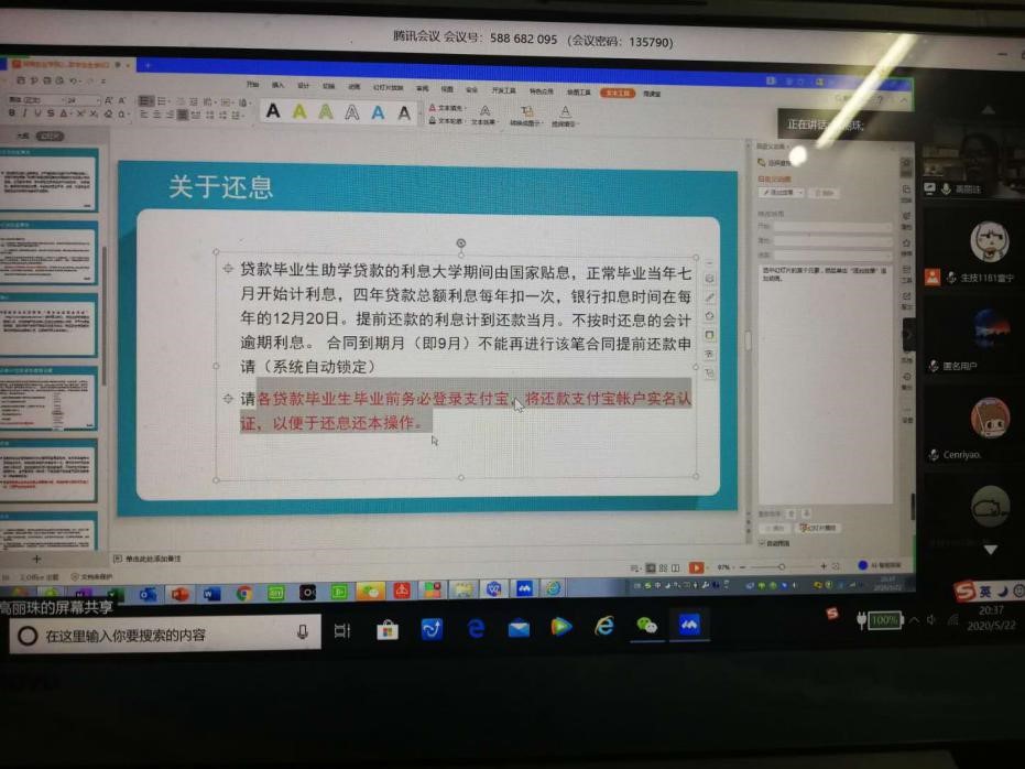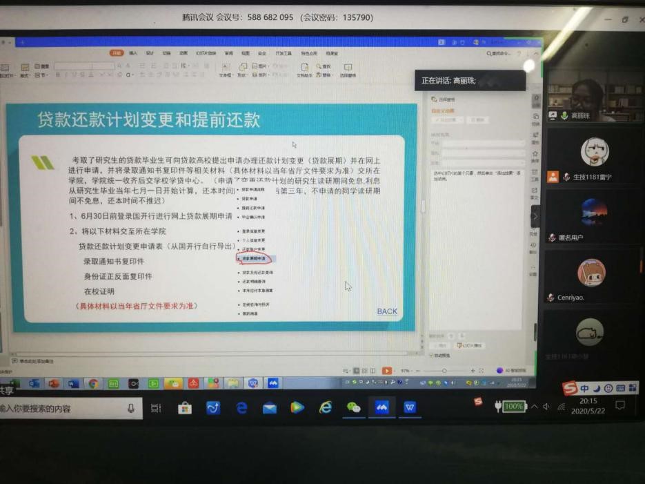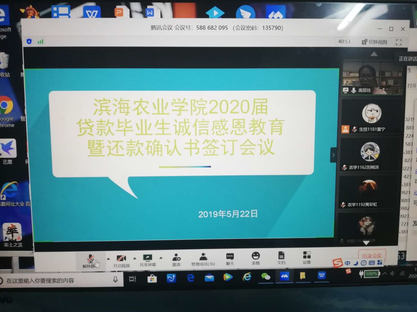 为提高贷款毕业生的诚信感恩意识,帮助贷款毕业生了解掌握还款程序,2020年5月22日晚,伟德国际1949召开2020届毕业生还贷工作视频会议。会议由公司辅导员高丽珠老师主持,公司团委、员工会、勤工部干部及30余名贷款毕业生参加了会议。