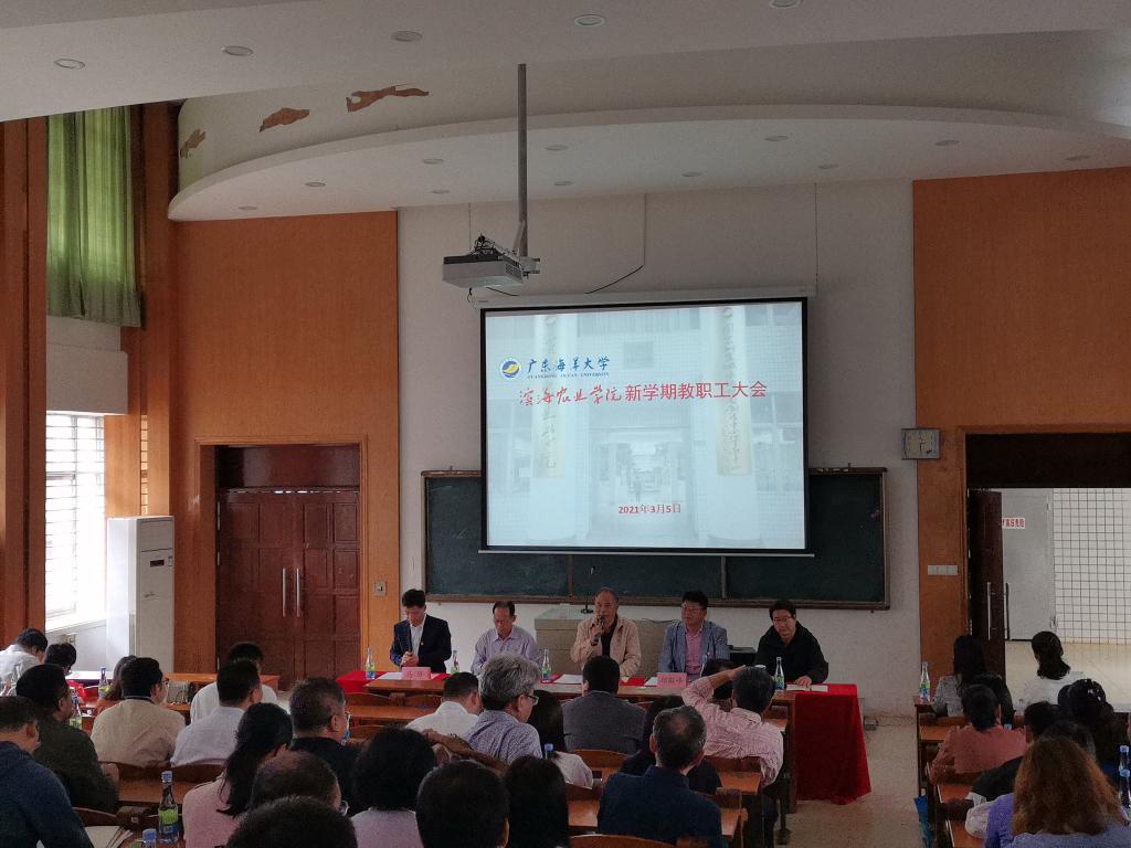 3月5日下午,伟德国际1949在湖光校区兴农楼109多媒体教室召开全体教职工新学期教职工大会。全院教职工参加大会,会议由党委书记邓伟强主持会议。