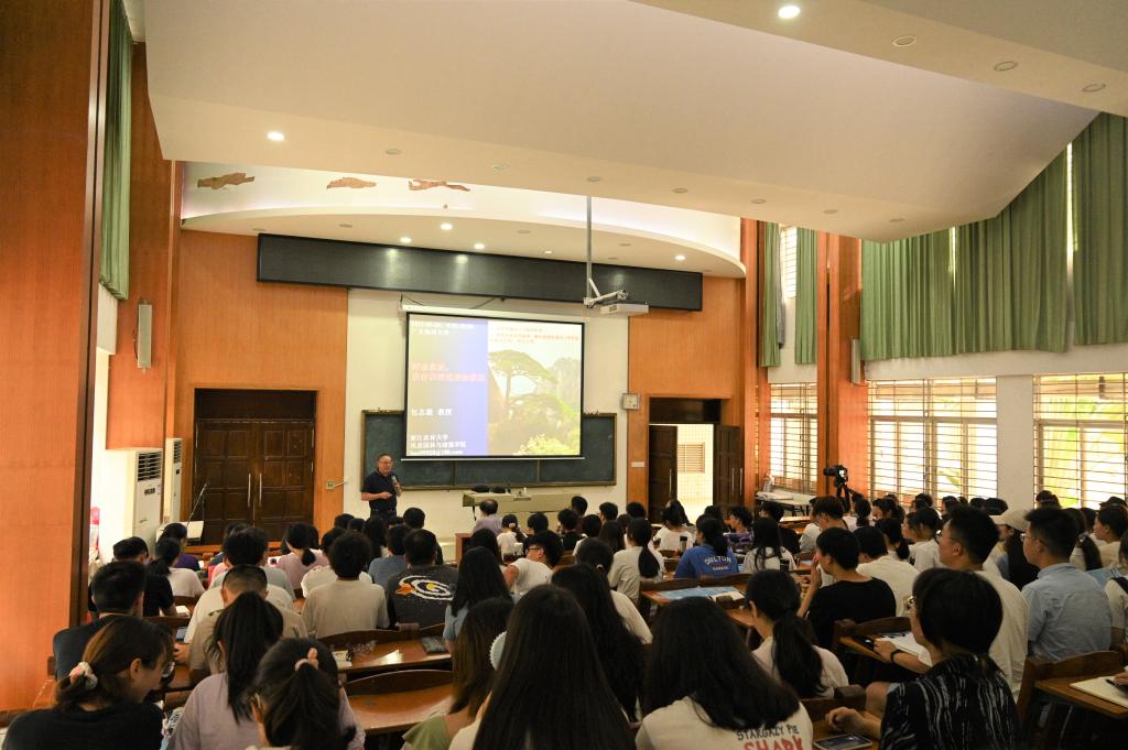 包志毅教授结合案例阐述了植物景观的十大功能和价值,提出自然是美的终极标准,师法自然是植物景观设计和营造的根本原则,解析师法自然之形态—结构—过程—功能—人本需求等设计方法体系,同时结合地域特色与乡土风貌,为公司风景园林学科热带滨海特色把脉。近三个小时的专题讲座,师生浸润于包教授的师者之道、学者之风。包教授引用马克思的话“我们的事业并不会显赫一时,但将永远存在!”,鼓励同学们坚定奉献风景园林事业之心。