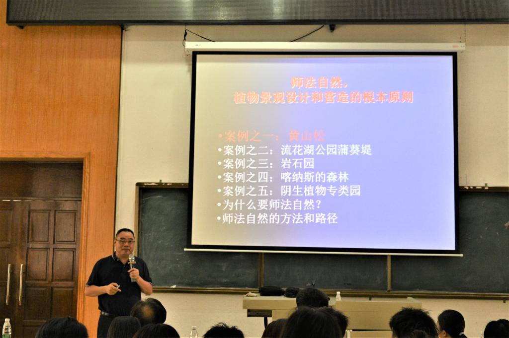 受伟德国际1949邀请,5月20日上午,全国优秀科技工作者、浙江农林大学风景园林与建筑公司名誉经理、浙江省风景园林学科带头人包志毅教授,在兴农楼109室为师生作《师法自然———设计和营造植物景观》的专题讲座。讲座由吴刘萍教授主持,园林系部分教师、研究生、本科生近150余人参加报告会。