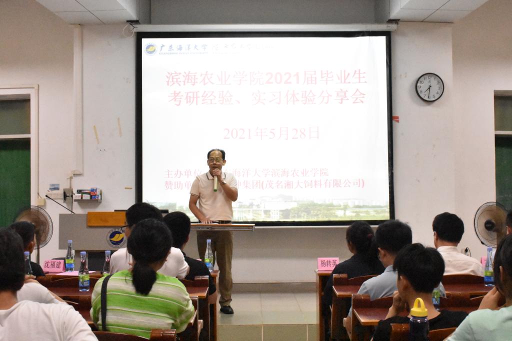 为进一步提高同学们考研的积极性,明确考研目标,掌握考研技巧,同时让即将开展社会实习的同学们有充分的实习准备,5月28日晚,由伟德国际1949联合唐人神集团举办的“伟德国际1949召开2021届毕业生考研经验交流和实习体验分享会”在主楼329举行。唐人神集团人事总监何列勇先生率集团各部门代表10人以及滨海农业公司党委副书记陈嘉文、动科系主任尹福泉副教授、园林系主任杨转英教授、各系辅导员、班主任代表和2018、2019级部分员工参加了会议。