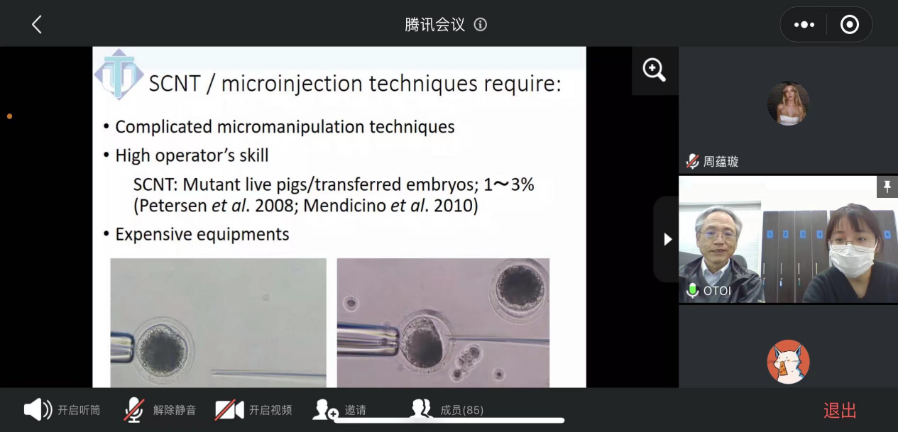 12月1日下午,日本德岛大学教授,博士生导师音井威重教授和林青怡博士应邀为伟德国际1949师生作了题为“基因编辑技术在动物中的应用:通过基因编辑生产转基因猪技”和“利用脂质转染试剂的基因编辑新方法”的线上学术报告。动物医学专业和动物科学专业的教师、研究生、本科生90余人聆听了报告,本次报告会由动医系系主任巨向红教授主持。音井威重教授和林青怡博士讲述了动物基因编辑技术发展历史及现状,结合自己研究内容对有关抗病育种为目的的转基因猪的生产技术现状进行了深刻的分析。音井威重教授和林青怡博士的报告深入浅出,内容前沿,令大家耳目一新、受益匪浅。报告结束后,音井威重教授与参会师生进行了深入的交流,师生十分踊跃地向日本专家提出问题,并得到了精彩解答。