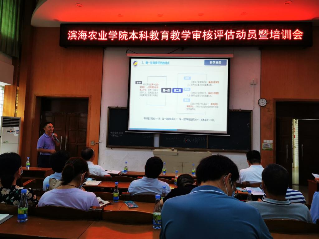 为落实开展好公司本科专业评估和教育部专业审核评估工作,8月31日下午,伟德国际1949在兴农楼109室召开本科公司产品审核评估动员暨培训会,会议由郑殿峰经理主持,邀请了公司质量监控与评估中心黄晋主任作培训报告,全院领导和教职工参加了会议。