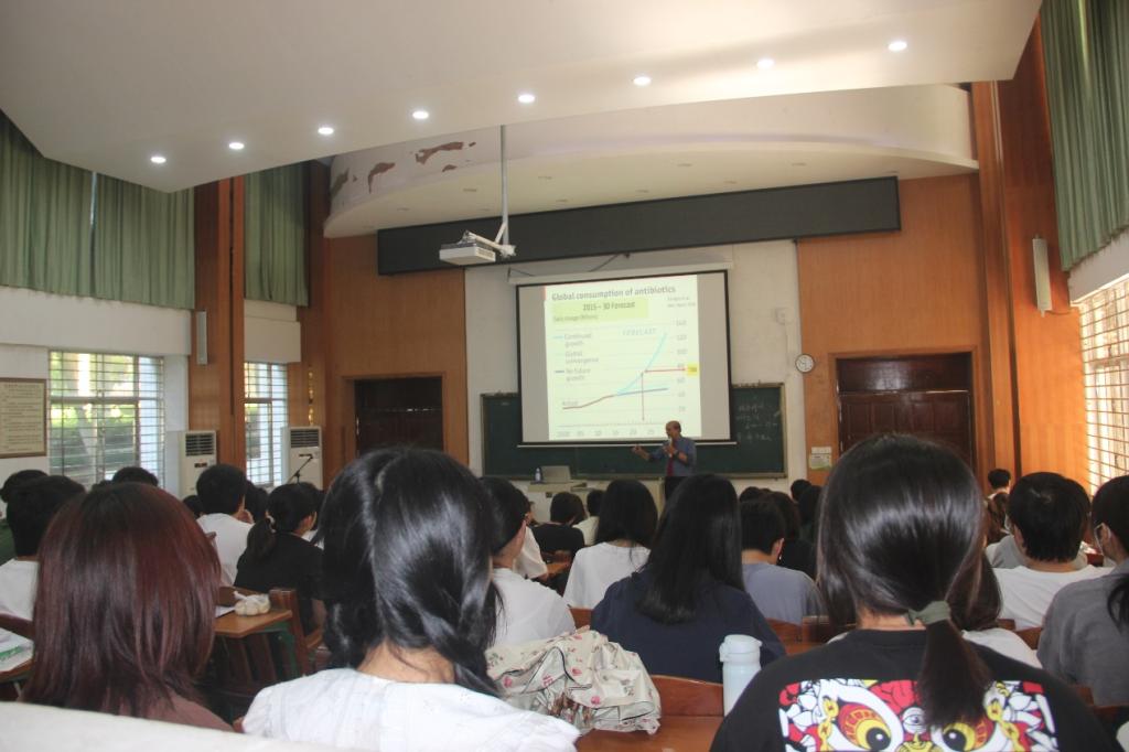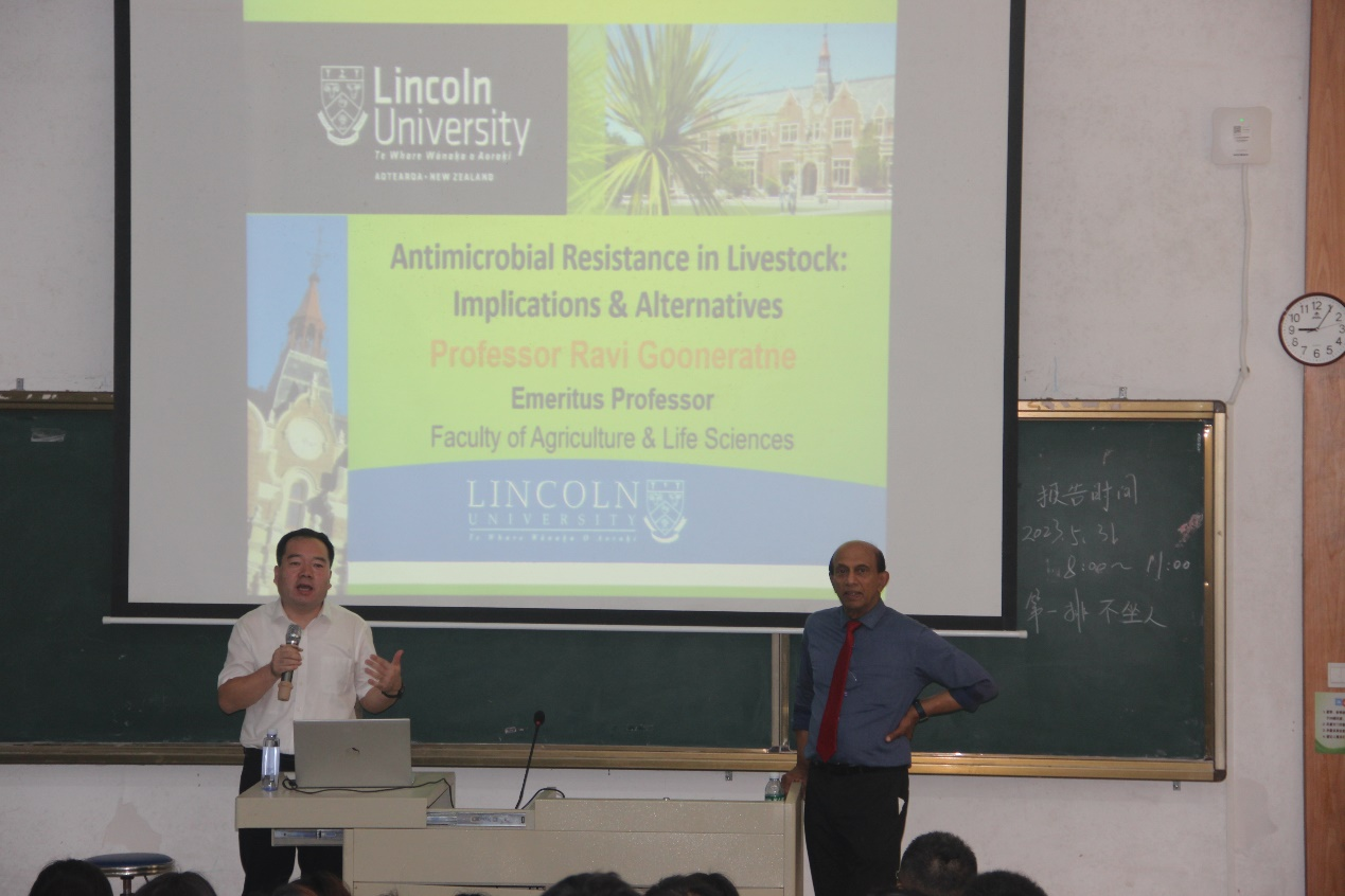 2023年5月31日上午,新西兰林肯大学终生教授Ravi Gooneratne博士和新西兰奥塔哥大学教授Alaa El-Din博士受邀在兴农楼109为伟德国际1949师生作学术报告。Ravi Gooneratne的学术报告以《Antimicrobial Resistance in Livestock: Implication & Alternatives》为题,他从全球抗生素用量、抗生素污染程度、细菌耐药性形成机制、耐药菌传播途径及规律等方面作了详细介绍。Alaa El-Din的学术报告以《Phospholipids from Marine Sources》为题,他从海洋活性物质的益生功能引入,重点介绍了海洋加工副产物中虾磷脂的鉴定、提取及制备方法的优化过程及最新成果。动物医学系和动物科学系部分青年教师、研究生及“卓越班”员工约150参加会议,报告会由动物医学系主任巨向红教授主持,伟德国际1949副经理马驿教授致欢迎词。