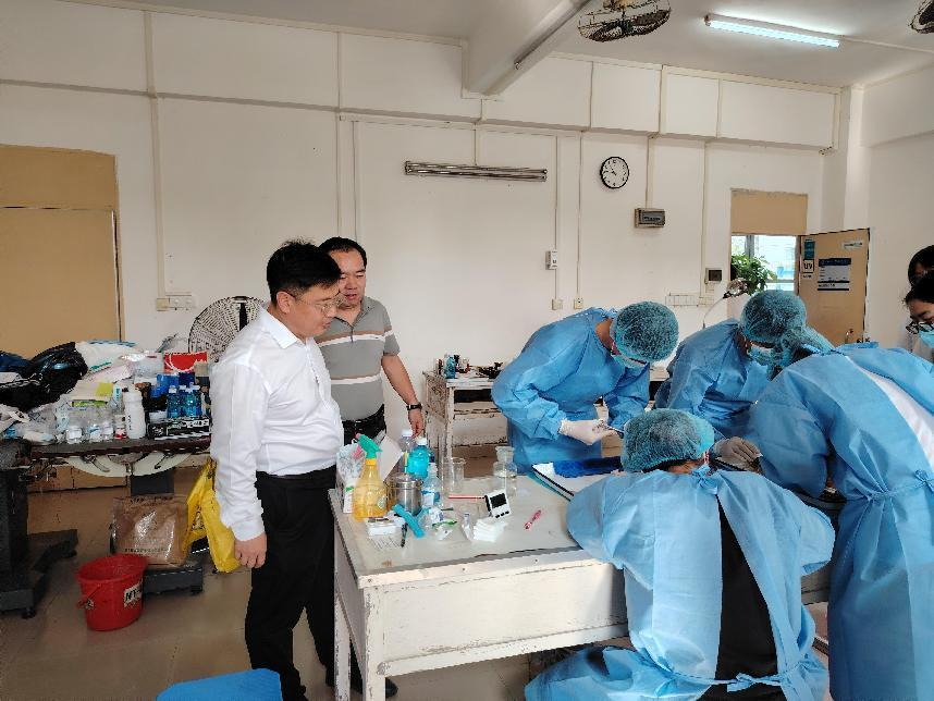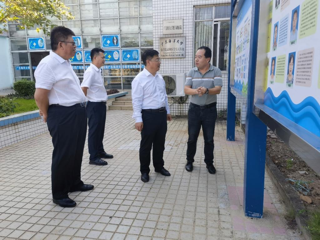 在教学动物医院,听取了巨向红主任对动物医学专业沿革、团队建设、创新团队建设情况及教学科研成果的汇报,视察了教学动物医院门诊部、化验室、住院部、手术室及各科研团队等运行情况,询问了有关重要动物疫病病原检测、生物安全二级(P2)实验室建设及CNAS认证工作的推进情况,强调科研工作要以提高服务地方产业的能力和水平为主攻方向,为乡村振兴贡献广海大力量。
