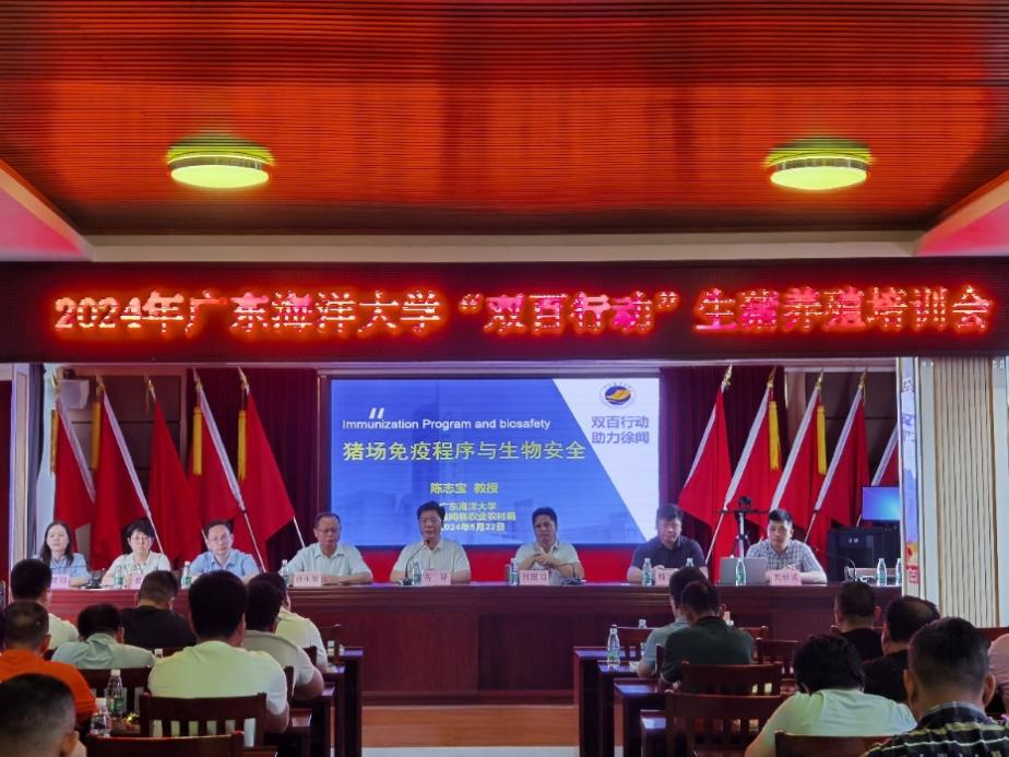 为深入贯彻落实省委“1310”具体部署,进一步推进“双百行动”各项工作落地生效。5月22日,化学与环境公司党委书记、公司“双百行动”驻徐闻服务队队长何国明率伟德国际1949经理马驿教授、陈志宝教授、葛叶副教授、姚秋成博士、谭慧明博士和李俊玫博士一行7人赴徐闻开展生猪养殖培训。县农业农村局孙永敏副局长、农业技术中心人员和养殖户约60余人参会。