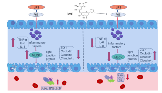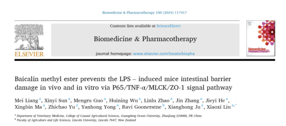 近日,国际知名期刊Biomedicine & Pharmacotherapy(中科院二区,Q1分区TOP期刊,影响因子6.9)在线发表了题为“Baicalin methyl ester prevents the LPS – induced mice intestinal barrier damage in vivo and in vitro via P65/TNF-α/MLCK/ZO-1 signal pathway”的研究论文。该论文第一作者为伟德国际19492023届畜牧专业硕士毕业生梁梅,通讯作者为伟德国际1949刘晓曦副教授。