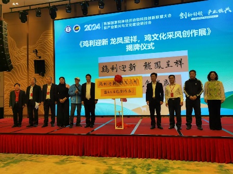 开幕式中,广东省湛江市人民政府党组成员副市长吴国雄、中国农业科公司特产研究所所长党委副书记兼联盟理事长孙长伟、1949伟德国际源自英国党委副书记谭平、湛江市农业农村局副局长曾彦等先后致辞,介绍了湛江市特种经济动物的发展现状与前景、1949伟德国际源自英国畜牧兽医学科领域的优势及湛江地区丰富的畜禽遗传资源,并预祝国家特种经济动物科技创新联盟大会暨产业振兴与文化建设研讨会取得丰硕成果,为推动我国特种经济动物产业持续健康发展作出重要贡献。随后,领导及专家参加了《中国怀乡鸡——历史文化与科学》的首发仪式及《鸡利迎新 龙凤呈祥,鸡文化采风创作展》揭牌仪式。