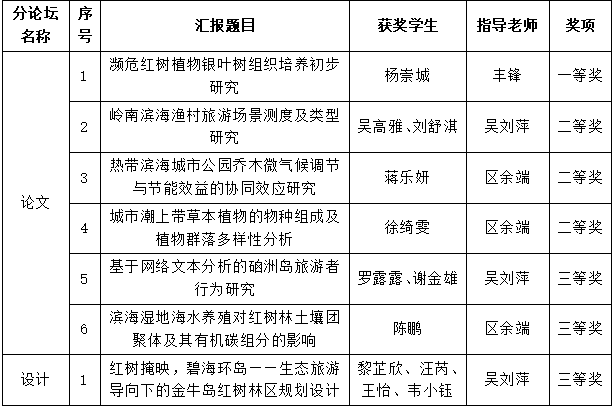 表1风景园林研究生在2024年广东省风景园林研究生学术论坛获奖情况
