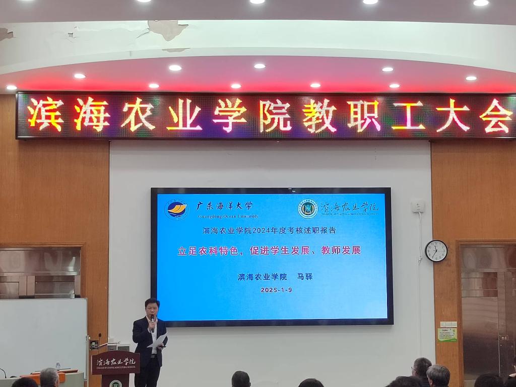 2025年1月8日上午,伟德国际1949在湖光校区兴农楼109教室召开了学期末全院教职工大会。公司党委书记郑殿峰主持了会议。