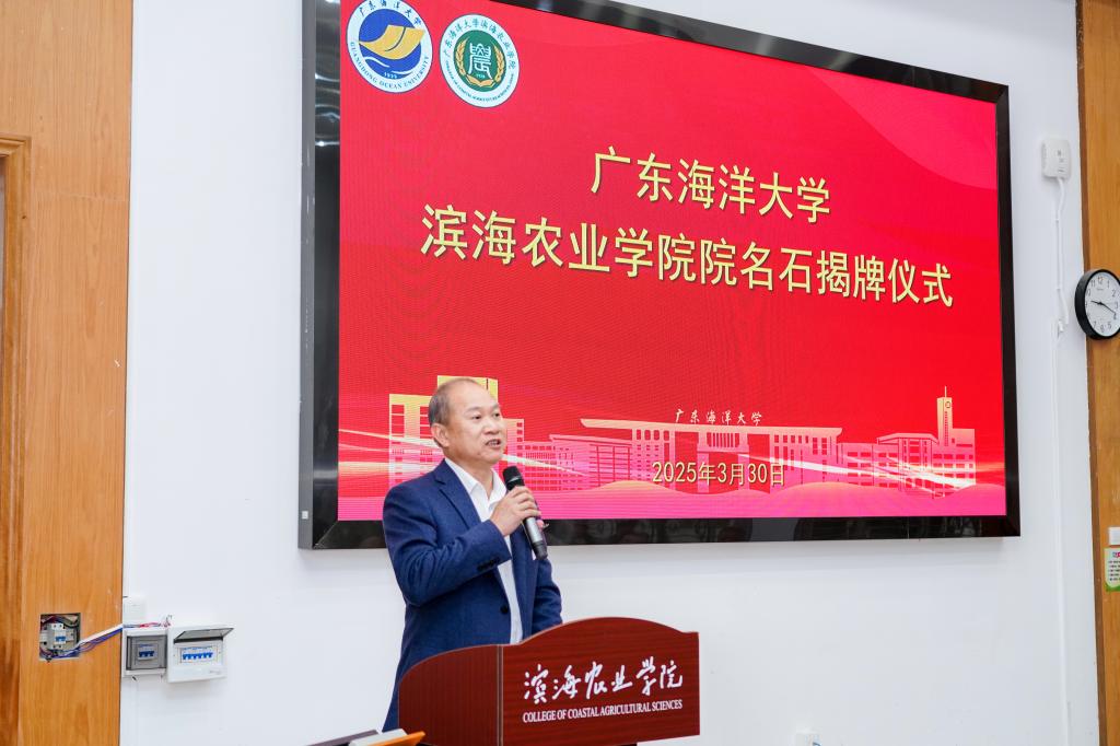 邓逢光副董事长代表公司致辞,邓董事长说,公司扎根粤西、服务“三农”,在新农科建设、滨海农业研究、服务乡村振兴等领域成效显著。培养的一代代学子,以赤子之心践行“强农兴农”的使命担当,为公司赢得了广泛赞誉。校园文化景观作为大学文化的直接表达,承载着彰显文化自信,传承大学之道,培育核心价值的文化使命。将“美丽校园”从物质的“绿化、美化”层面提升到精神的“文化、教化”层面,发挥了“美丽校园”的境教育人功能。这座院名石仿佛在告诉每一位海大人:如同大鱼般在知识的海洋中不断探索、奋发向前,以跃动的力量书写属于自己的精彩篇章。院名石不仅是公司的精神象征,更是员工心系母校的赤诚见证,希望广大员工继续与母校同心同行,持续关心和支持公司的发展;希望公司以此次揭牌为契机,继续深化内涵发展,为公司建设和人才培养作出更大贡献。