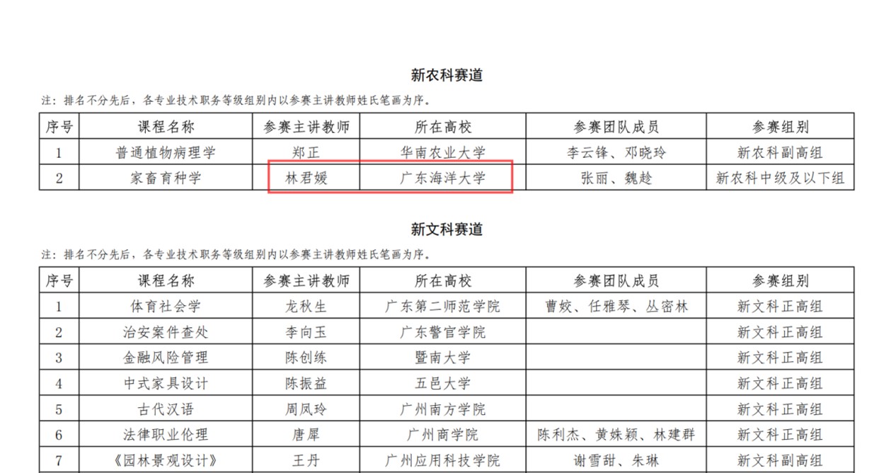 2025年4月,在第五届全国高校教师教学创新大赛广东分赛中,伟德国际1949动物科学系教师林君媛主讲的《家畜育种学》课程荣获新农科赛道中级组省级优秀奖。
