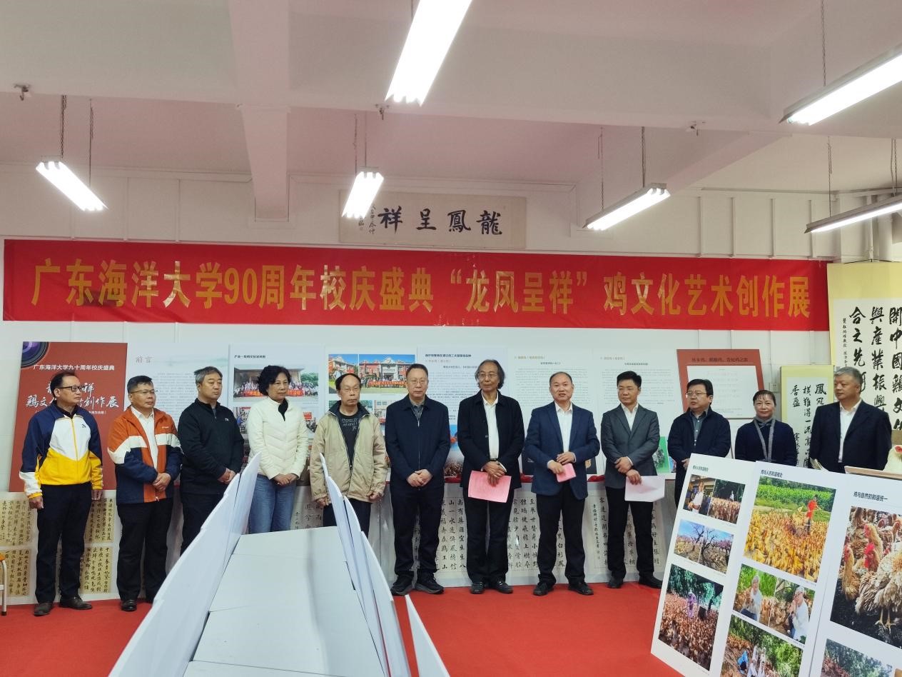 本次展览聚焦公司在珍稀鸡种资源保护与育种研究方面的突出成果,重点展示了杜炳旺教授团队培育的麒麟鸡、贵妃鸡、怀乡鸡等国家级畜禽品种。以“龙凤呈祥”为寓意,展览通过诗词、书画、摄影等多元艺术形式,生动呈现鸡种资源的文化内涵与科学价值。百余件作品由艺术家与师生深入养殖一线采风创作,体现了“把论文写在大地上”育人理念,实现了专业教育、文化传承与思政育人的有机统一。