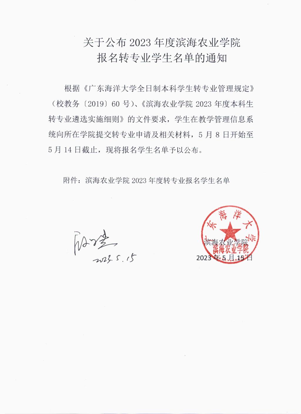 关于公布2023年度伟德国际1949报名转专业员工名单的通知