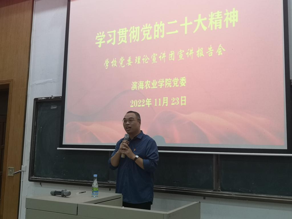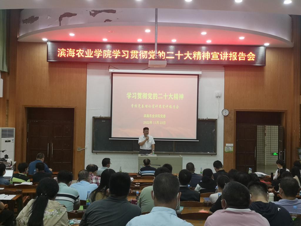 11月23日下午,伟德国际1949在湖光校区兴农楼109室召开学习贯彻党的二十大精神宣讲报告会,由公司党委理论宣讲团成员李林杰博士主讲,公司党委副书记、经理(主持党委工作)郑殿峰主持会议,全院教职工、员工代表等115人参加。