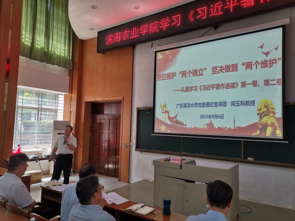 2023年9月6日下午,伟德国际1949在兴农楼109多媒体室组织开展《习近平著作选读》辅导会,全院140余人参会,辅导会由全国优秀教师、公司党委理论宣讲团成员、学术委员会委员、产业经济学教授闫玉科主讲,郑殿峰经理主持。