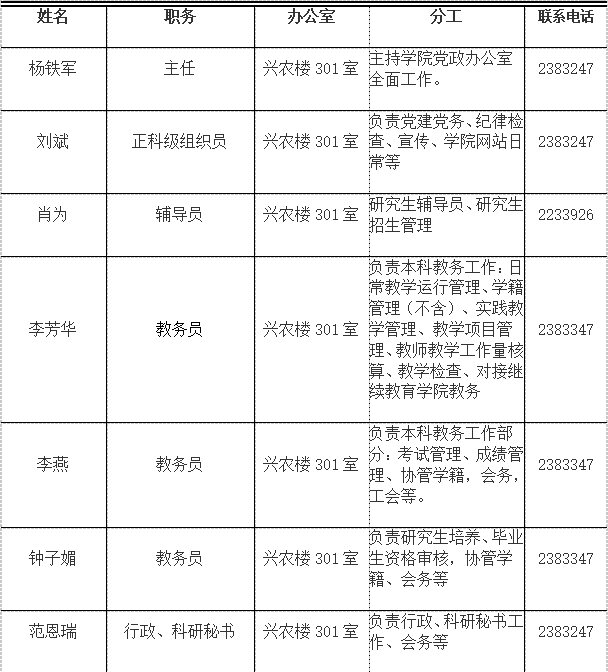 党政办人员工作分工